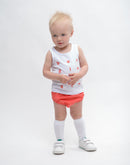 Our Baby Tank Top is made from 100% cotton, providing a breathable and comfortable option for warm weather.