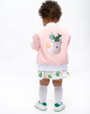 Introducing our Baby Bomber Jacket, featuring a main fabric of 100% polyester on the outside and a lining of 100% cotton on the inside for a comfortable fit. Designed with long sleeves, front zip fastening, and elasticated cuffs, this loose-fit jacket boasts a playful rhino print on the back. Perfect for adding a fun touch to your little one’s wardrobe.