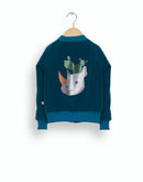 Introducing our Baby Bomber Jacket, featuring a main fabric of 100% polyester on the outside and a lining of 100% cotton on the inside for a comfortable fit. Designed with long sleeves, front zip fastening, and elasticated cuffs, this loose-fit jacket boasts a playful rhino print on the back. Perfect for adding a fun touch to your little one’s wardrobe.